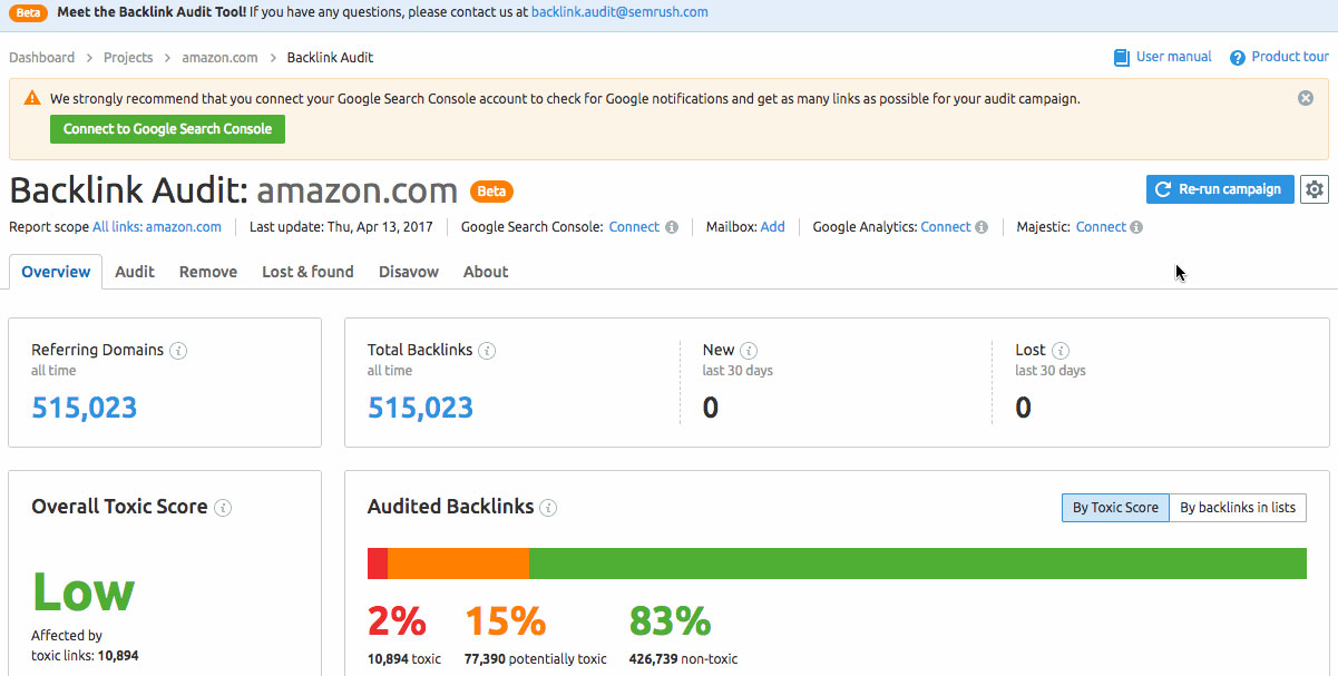 Apart from keywords, backlinks are also playing a role in determining your ranking. That’s why you need a tool like the Backlink Audit Tool which shows you where your backlinks are coming from and make sure that they are from reputable sources. You might think that you cannot control which sites link back to you, but SEMrush allows you not only to see all the links but also remove the bad ones, and avoid being Penalized.