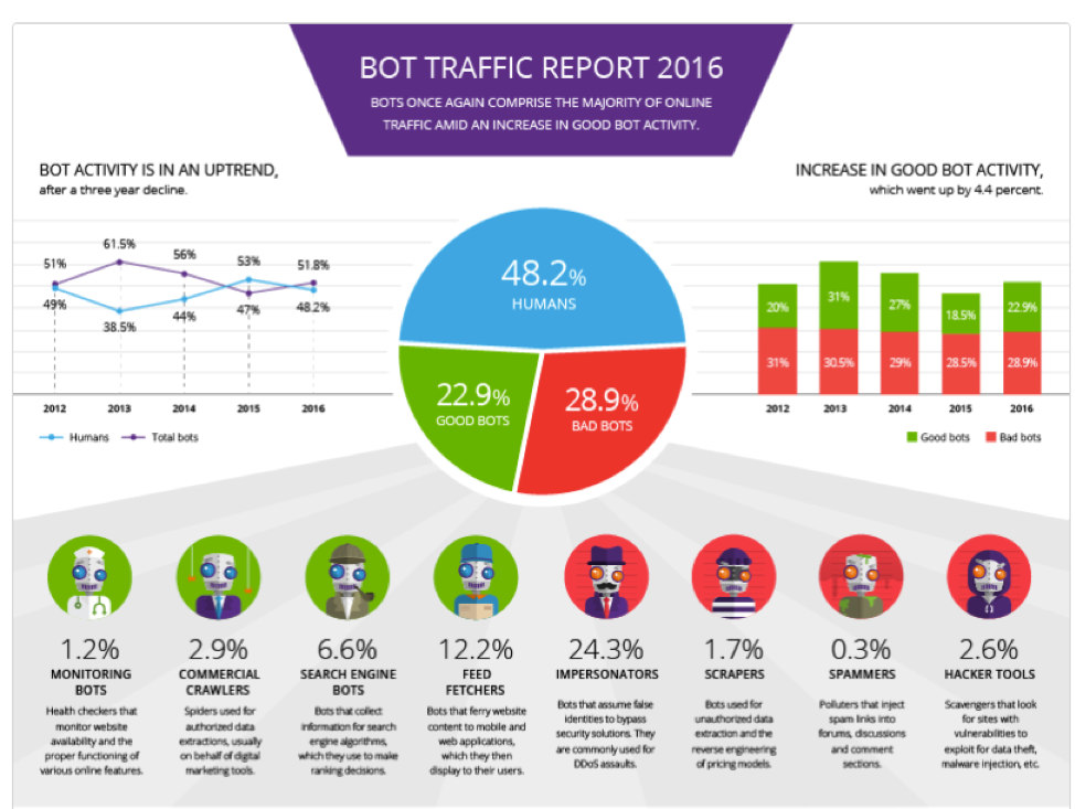 The bad bot traffic, many times is a form of purchased traffic, that website users buy from low-quality sites.